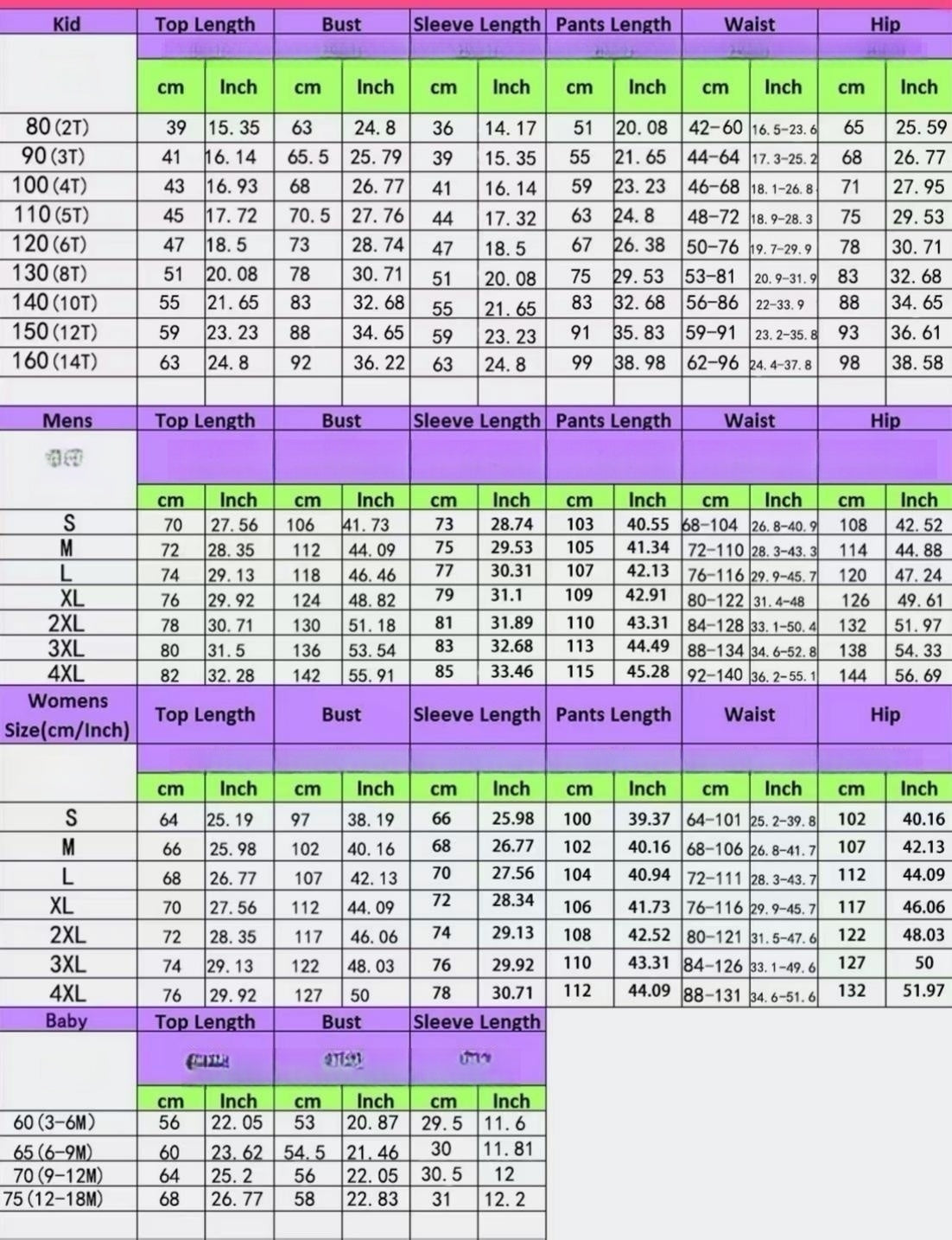 Suitable height: Father s size, Father M size, Father L, father XL, father 2XL, father 3XL, father 4XL, Mother S, Mother M, mother size L, mother XL, mom 2XL, mom 3XL, mom 4XL, Baby 6, Baby 9, baby 12, baby 18, children 2, children 3, children 4, children 5, children 6, children 8, children 10, children 12, children 14, Dog S, Dog M, dog L, dog XL