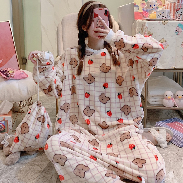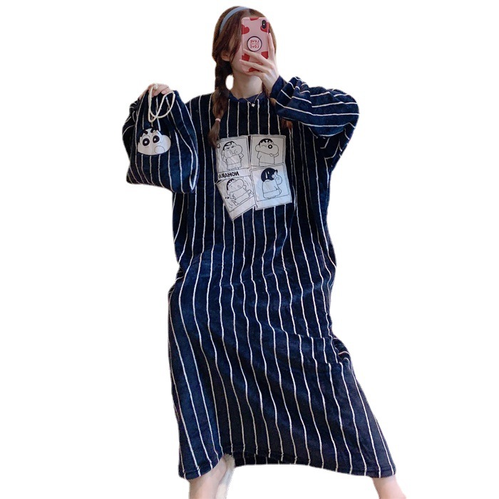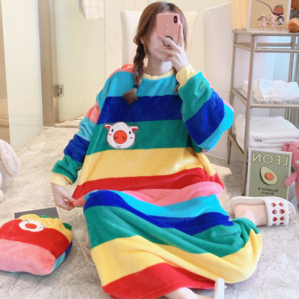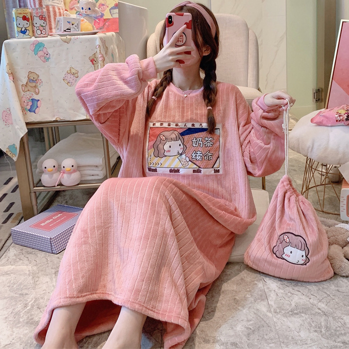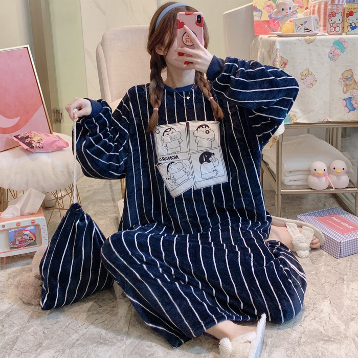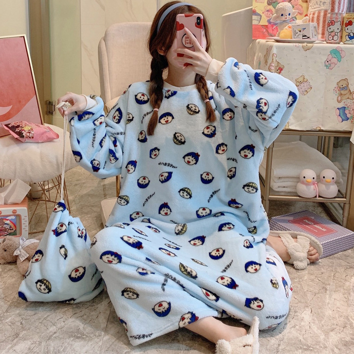 Winter Ladies Pajamas Home Service Flannel Cartoon Nightdress