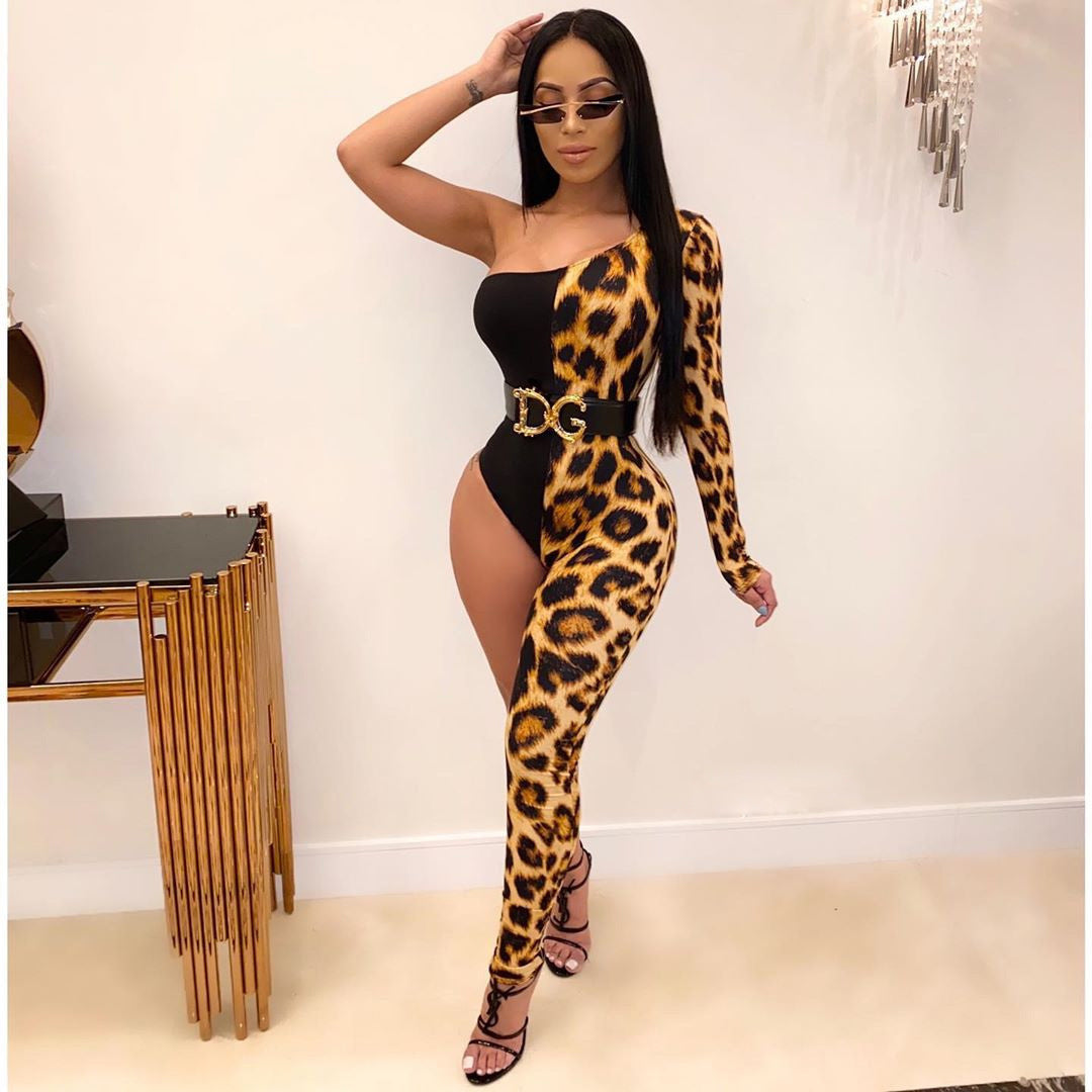 Women's Asymmetrical Leopard Print Jumpsuit