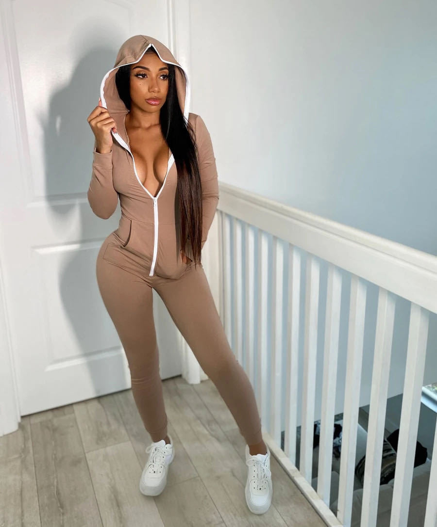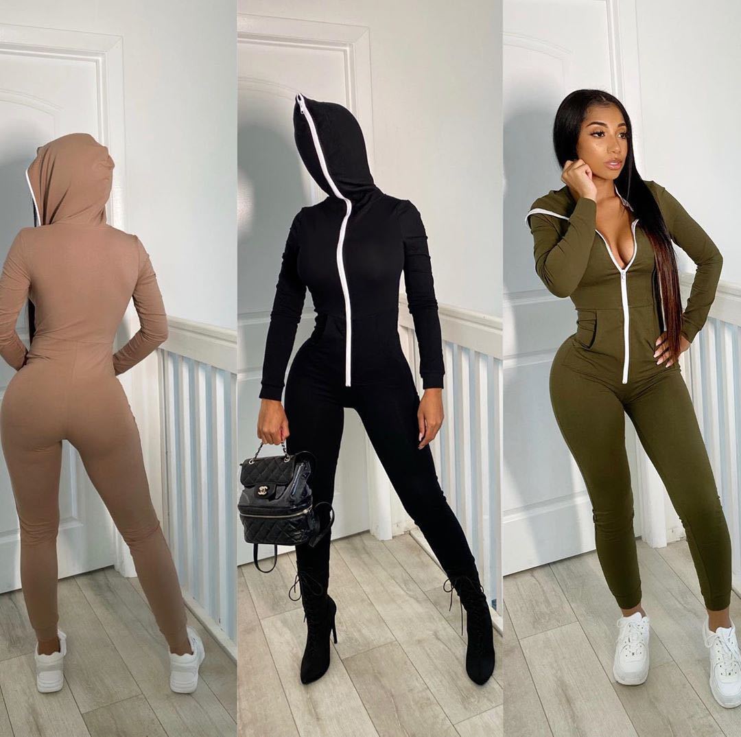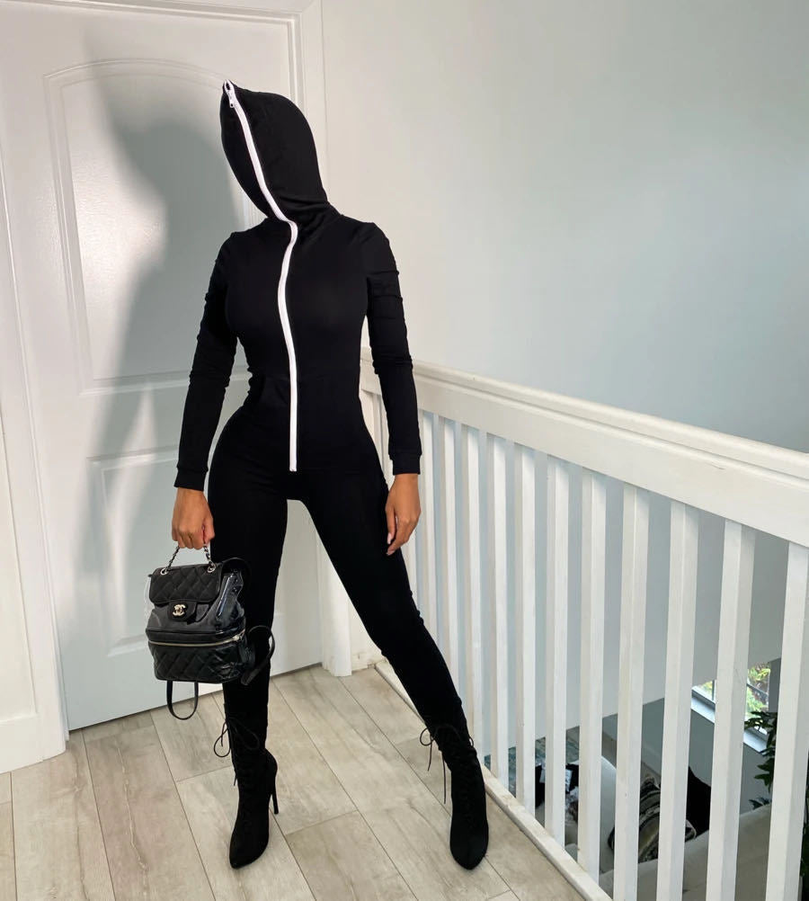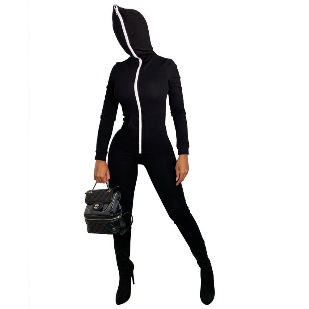 Hooded Solid Color Jumpsuit Sweater